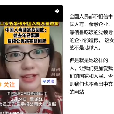 https://youtu.be/dz2rgNxNAoA 中国人寿公司职工再次发视频追问真相